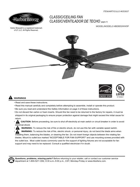 Read Harbor Breeze Ceiling Fan Manual Paperback